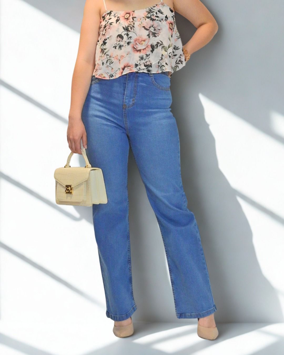 Nuestros jeans de cintura alta están diseñados para resaltar tu figura con elegancia y brindar comodidad todo el día. Confeccionados en México con tela de 99% algodón y 1% elastano, ofrecen un ajuste firme pero flexible que se adapta naturalmente a tu cuerpo.